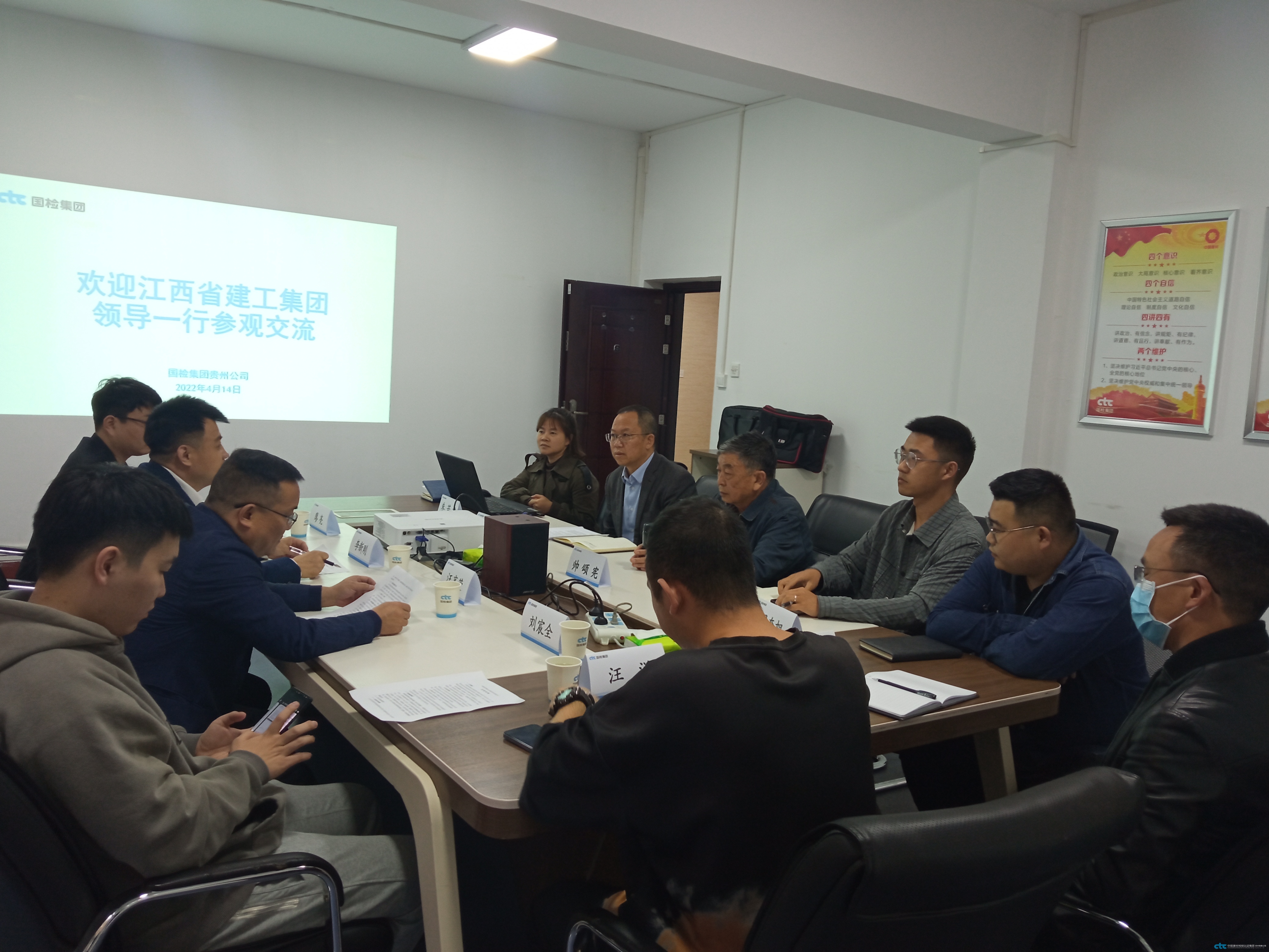 2022年4月14日,江西省建工集團(tuán)總工程師李新剛帶隊(duì)來(lái)我司考察交流,貴州公司副總經(jīng)理李繼超代表公司對(duì)李新剛總工程師一行的到訪表示熱烈歡迎,雙方就高性能混凝土技術(shù)和信息化建設(shè)、數(shù)字化建設(shè)進(jìn)行了深入交流與探討。貴州公司副總經(jīng)理李繼超、技術(shù)總顧問(wèn)帥頌憲、總經(jīng)理助理朱若君等參加交流活動(dòng)。